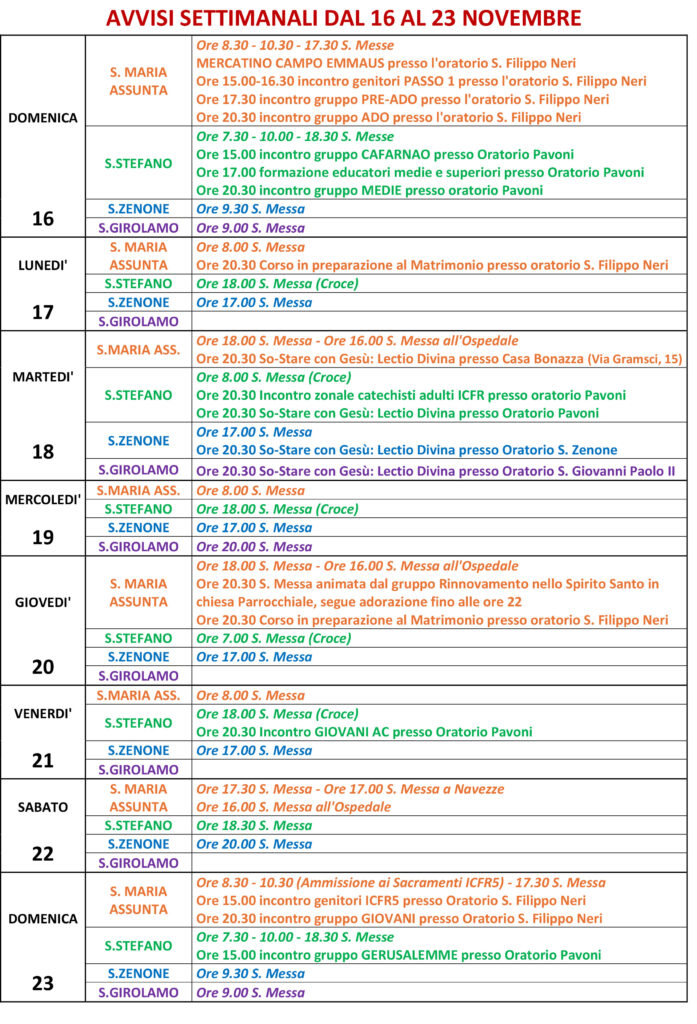 AVVISI SETTIMANALI DAL 16 AL 23 NOVEMBRE